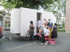 Summer 2013 the mbx travelled Frankfurt. The mbx showcases interaction with the residents of the respective neighborhoods- as a