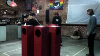 | an installation that invites the audience to partcipate according to movement and postioning the sound columns will change rhythm and tonalintensity of the sound emitted Marburg 2016 and Nancy 2017 |