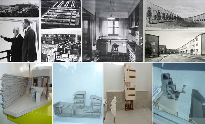 Frankfurt's historical 20s Ernst May communal housing settlement is site for a fictinal demolition and reconstruction of one of its terraced houses. Students of the Frankfurt school of applied science develop a series of architectural proposals in the course of one semester in 2010. |